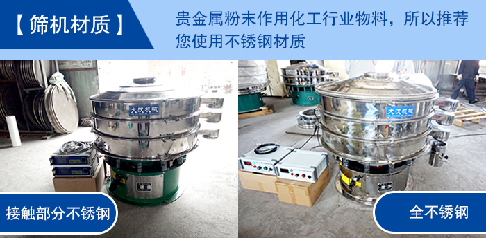 【篩機(jī)材質(zhì)】—— 貴金屬粉末作用化工行業(yè)物料,所以推薦您使用不銹鋼材質(zhì),而常用的不銹鋼超聲波振動(dòng)篩分為兩種結(jié)構(gòu),一種是整機(jī)均采用不銹鋼制成,另一種是與物料接觸不分為不銹鋼材質(zhì),底座為碳鋼材質(zhì),至于如何選擇就看您對衛(wèi)生環(huán)境的要求以及成本預(yù)算了。