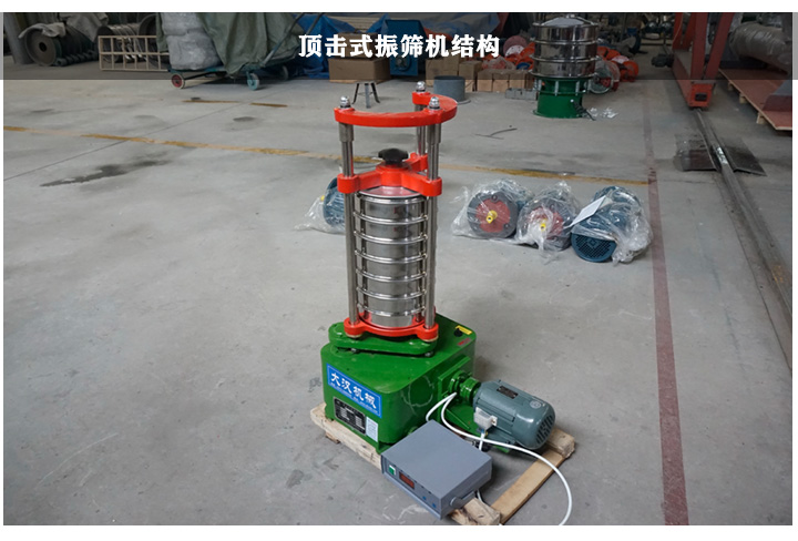 頂擊式振篩機分別由頂蓋、圓手柄、緊定手柄、螺桿、篩框、振動托盤、定時器、振動電機、開關等組成,它適合200目或300目的物料篩分,每分鐘搖動次數236次左右,每分鐘頂擊次數162次左右,整體使用效果良好,適用于細物料的篩分和分級。