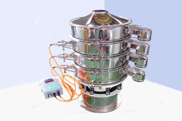 超聲波振動篩電源產生的高頻電通過換能器轉換成高頻正弦形式的縱向振蕩波,這些振蕩波傳到共振器上使共振器產生共振,然后由共振器將振動均勻傳輸至篩面。篩網上的物料在做低頻三次元振動的同時,疊加上超聲波振動,既可防止網孔堵塞,又可提高篩分產量和精度。