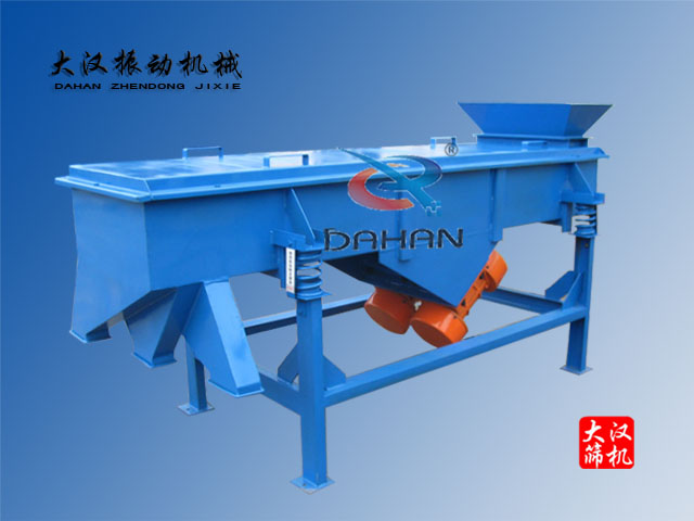 大漢振動篩廠家為了方便直線振動篩的效率及精度提高,保證物料在篩面的上均勻,特在直線振動篩進料口上端特殊加進料斗分散器,使物料均勻的分散的直線振動篩篩面上,提高透網率增加了篩分效率及篩分精度。