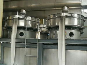 超聲波振動篩電源產(chǎn)生的高頻電通過換能器轉(zhuǎn)換成高頻正弦形式的縱向振蕩波,這些振蕩波傳到共振器上使共振器產(chǎn)生共振,然后由共振器將振動均勻地傳輸至篩面。篩網(wǎng)上的物料在做低頻三次元振動的同時,疊加上超聲波振動,既可以防止網(wǎng)孔堵塞,又可以提高篩分產(chǎn)量與精度。