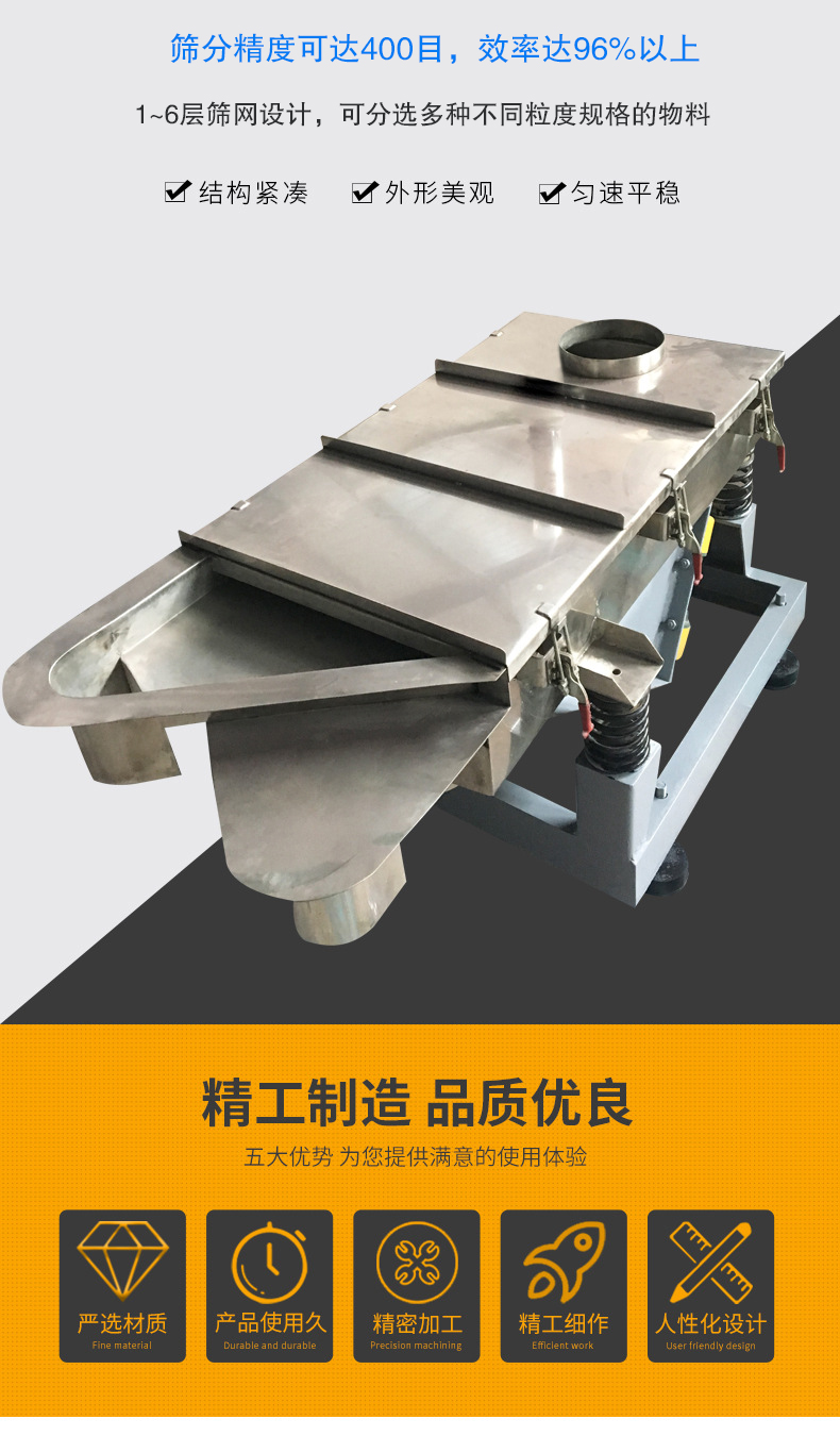 3、1~6層篩網設計,可分選多種不同粒度規格的物料;